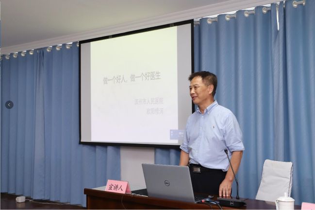 “做一個好人,做一個好醫生。”宣講會上,全國五一勞動獎章、全國衛生系統先進工作者、全國抗疫先進個人、濱州市道德模范、濱州市人民醫院呼吸與重癥醫學科主任醫師、教授、碩士研究生導師歐陽修河分享了一名普通醫生成長為一名呼吸科專家的心得體會。他說,“生在新社會,長在紅旗下,感謝榜樣力量。”同時他還分享了在抗擊非典和新冠肺炎疫情時的自身經歷,真切生動的話語贏得了大家陣陣掌聲。
