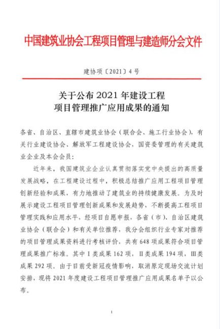 近日,中國建筑業(yè)協(xié)會發(fā)布的《關(guān)于公布2021年建設(shè)工程項(xiàng)目管理推廣應(yīng)用成果的通知》文件顯示,城建集團(tuán)申報(bào)的《機(jī)電工程BIM深化設(shè)計(jì)助推項(xiàng)目管理再上新水平》榮獲國家級建設(shè)工程項(xiàng)目管理推廣應(yīng)用一類成果。